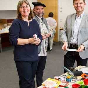 Egal ob Mappen, Kleber, Scheren, Locher, Stifte etc. - alles, was von diversen Abteilungen nicht mehr gebraucht wurde stand zur freien Entnahme im Parterresaal bereit und wartete auf einen neuen Besitzer. So wurde bereits verstaubten Dingen neuer Glanz verliehen.