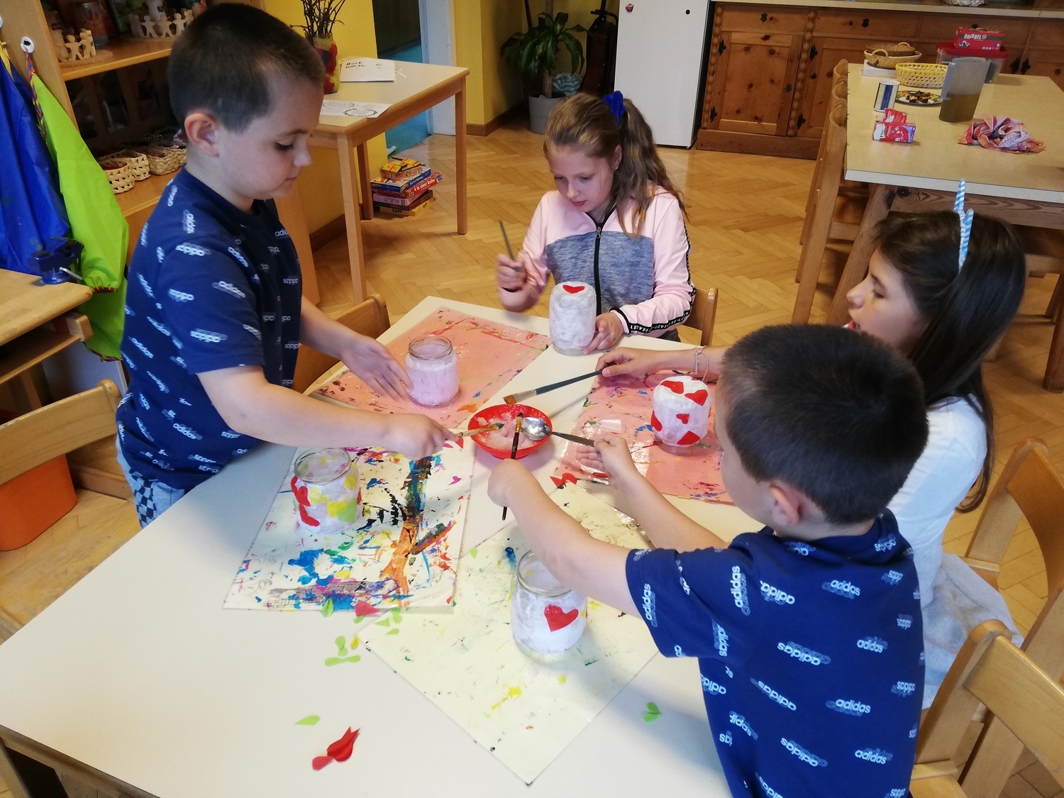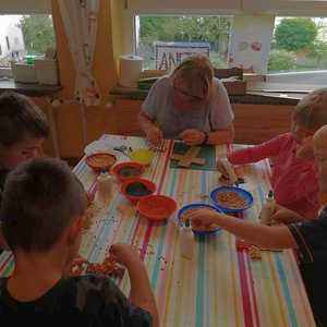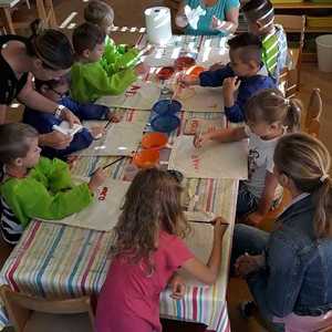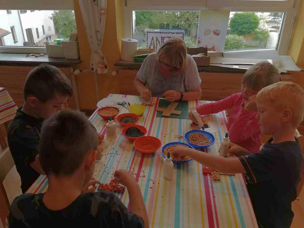 Kinder lieben zu gestalten und mit unterschiedlichen Materialien ihre Kreativität auszuleben. Sie stellen ihre Sicht der Wirklichkeit zur Welt, Gefühle und Erlebnisse dar. Jeder künstlerische Ausdruck ist ein Stück Selbsterfahrung und Persönlichkeitsentwicklung.¹ Eine Vielzahl an Bastelmaterialien, Farben, Werkstoffe wie Holz,Darstellungsmöglichkeiten und Bücher stehen ihnen zur Verfügung. Kinder können Geräte zerlegen und wieder zusammenbauen, außerdem „verschönern“ wir unseren Hort gemeinsam. Immer wieder gibt es kleine Projekte, in denen interessierte Kinder mit Schleifmaschine, Pinsel und Lack arbeiten. Die Kinder entscheiden, ob sie eigene Ideen umsetzen oder sich lieber an unseren Angeboten orientieren. Wichtig ist uns dabei nicht bewertend vorzugehen.